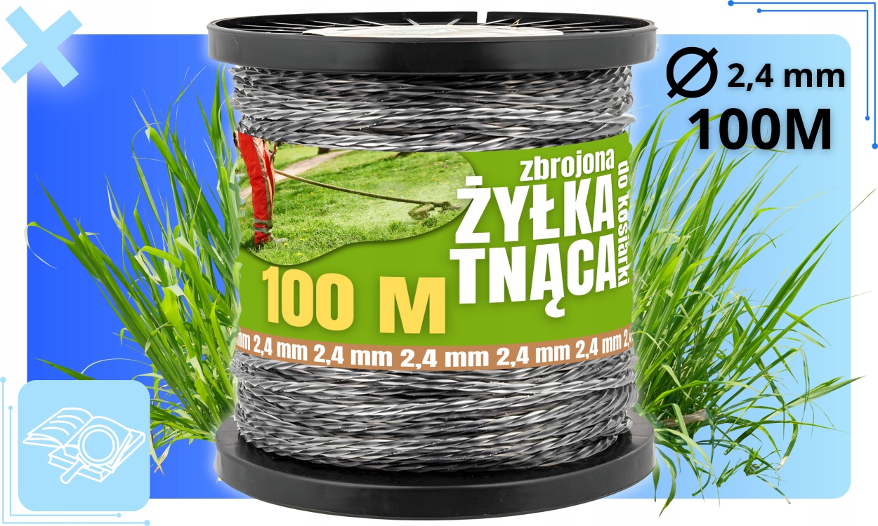 ПІДСИЛЕНА ЛІНІЯ РІЗАННЯ ДЛЯ ТРИМЕРНИХ ГОЛОВОК, ЩІТКОВИХ МАСЛА, СИЛЬНОЇ ТРАВИ, 2,4 мм, 100 м