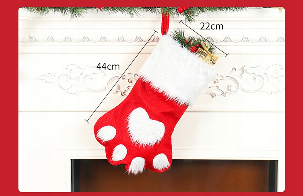 Один розмір: довжина 44 см і ширина 22 см, великі новорічні панчохи для собак.