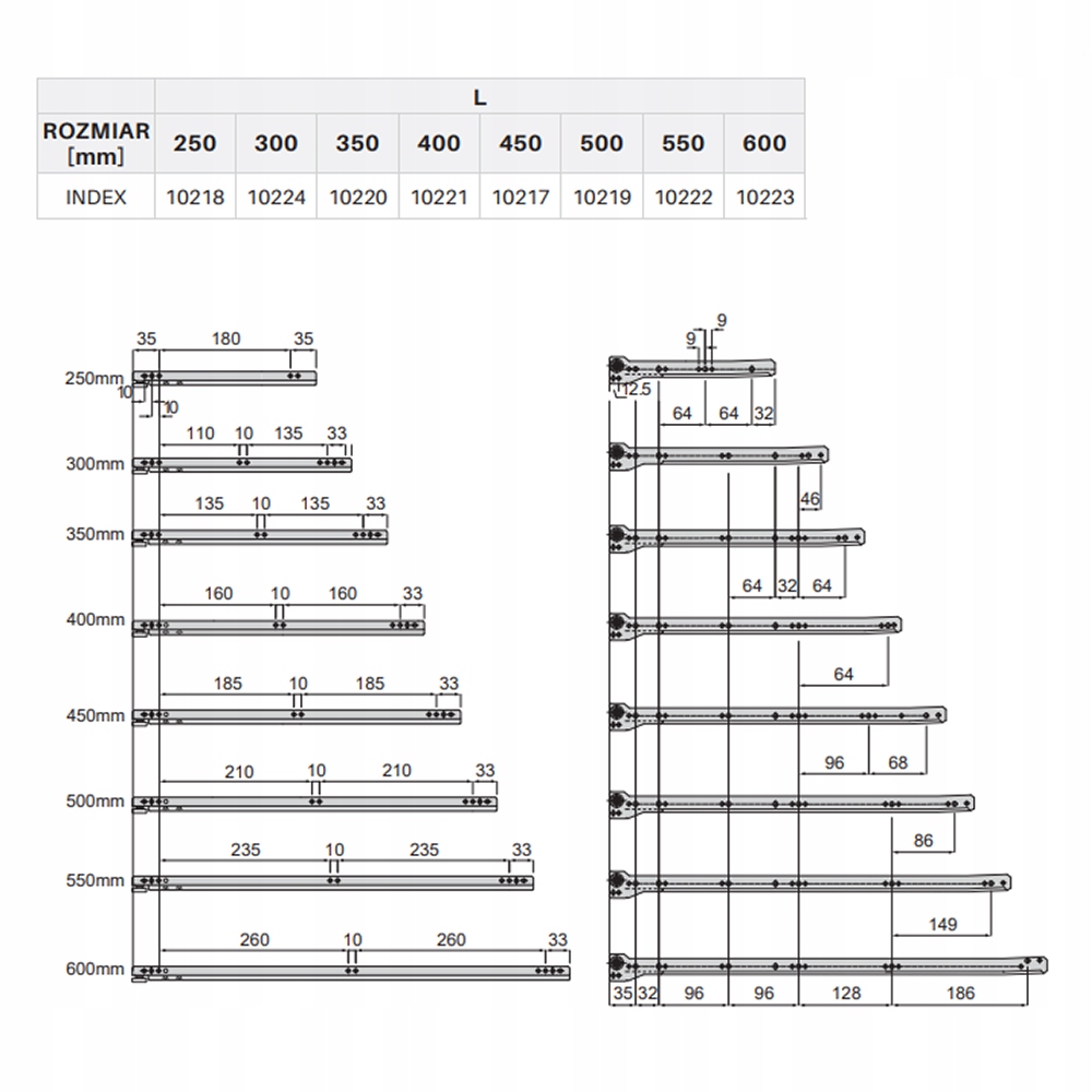 2x РОЛИКОВА МЕБЛЕВА НАПРАВЛЯЮЧА ДЛЯ ЯЩИКІВ L-300