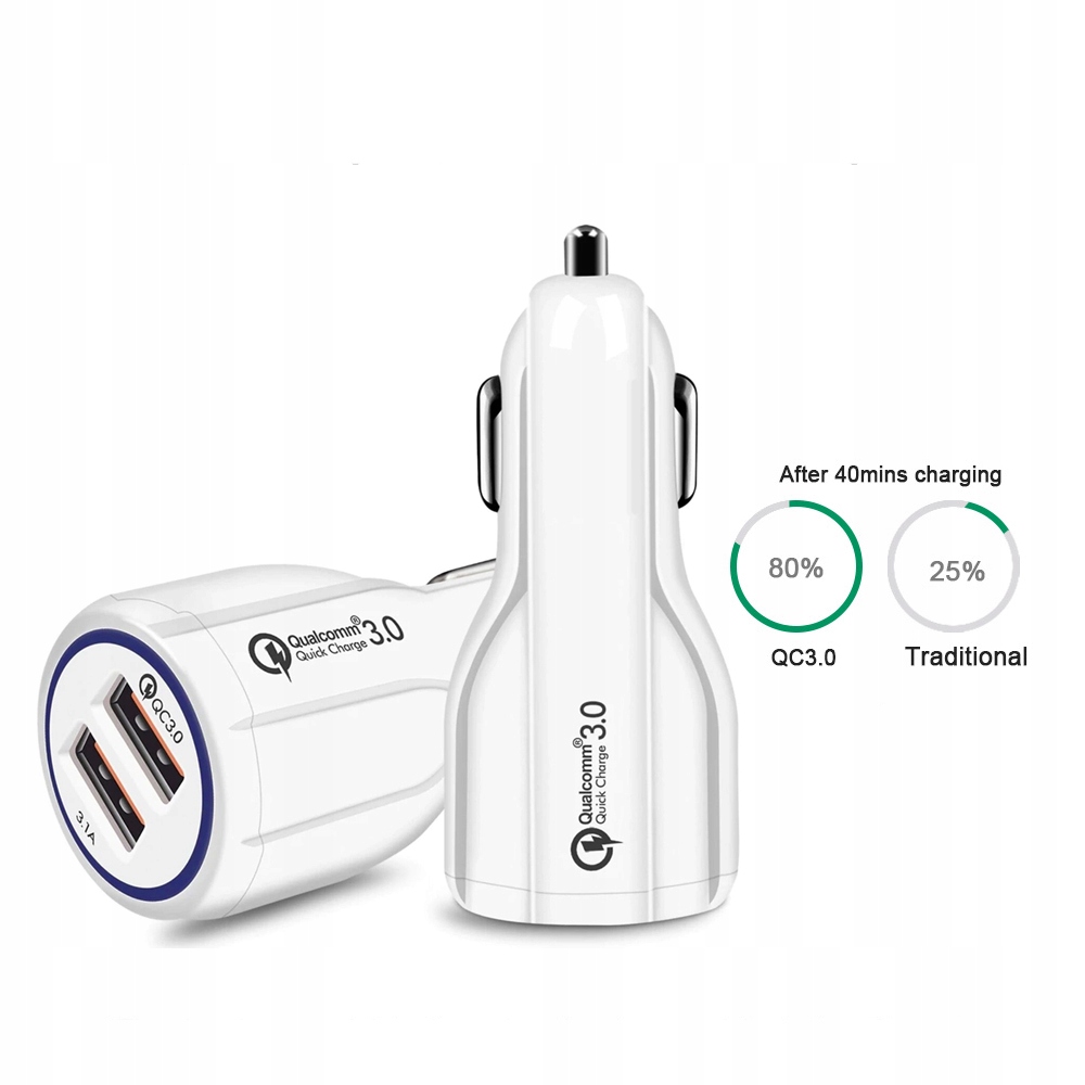 2x ШВИДКИЙ АВТОМОБІЛЬНИЙ ЗАРЯДНИЙ ПРИСТРІЙ ШВИДКОЇ ЗАРЯДКИ USB