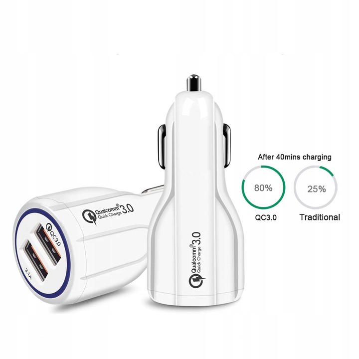 - Автомобільний зарядний пристрій 2x USB QC 3.0