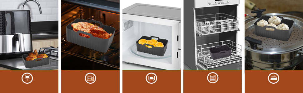 - ✅ У вас є силіконова миска підходить не тільки для фритюрниці гарячого повітря, але й для мікробівних кухів, печей, пристроїв для приготування їжі тощо, що обслуговує їжу та плоди та більше.