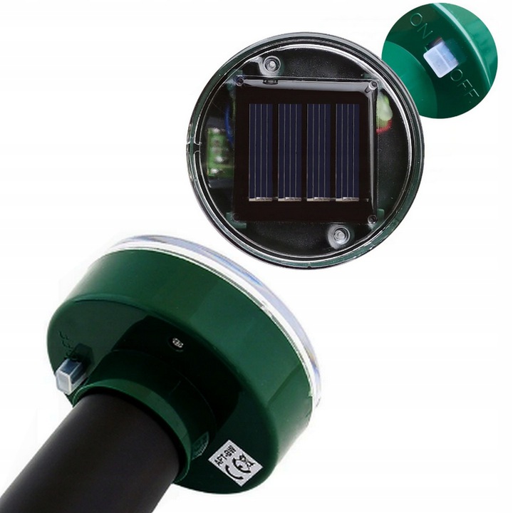 Відлякувач обладнано ефективною сонячною панеллю, яка автоматично заряджає пристрій під час повного сонця та в похмурі дні, щоб забезпечити джерело енергії 24 години на добу.