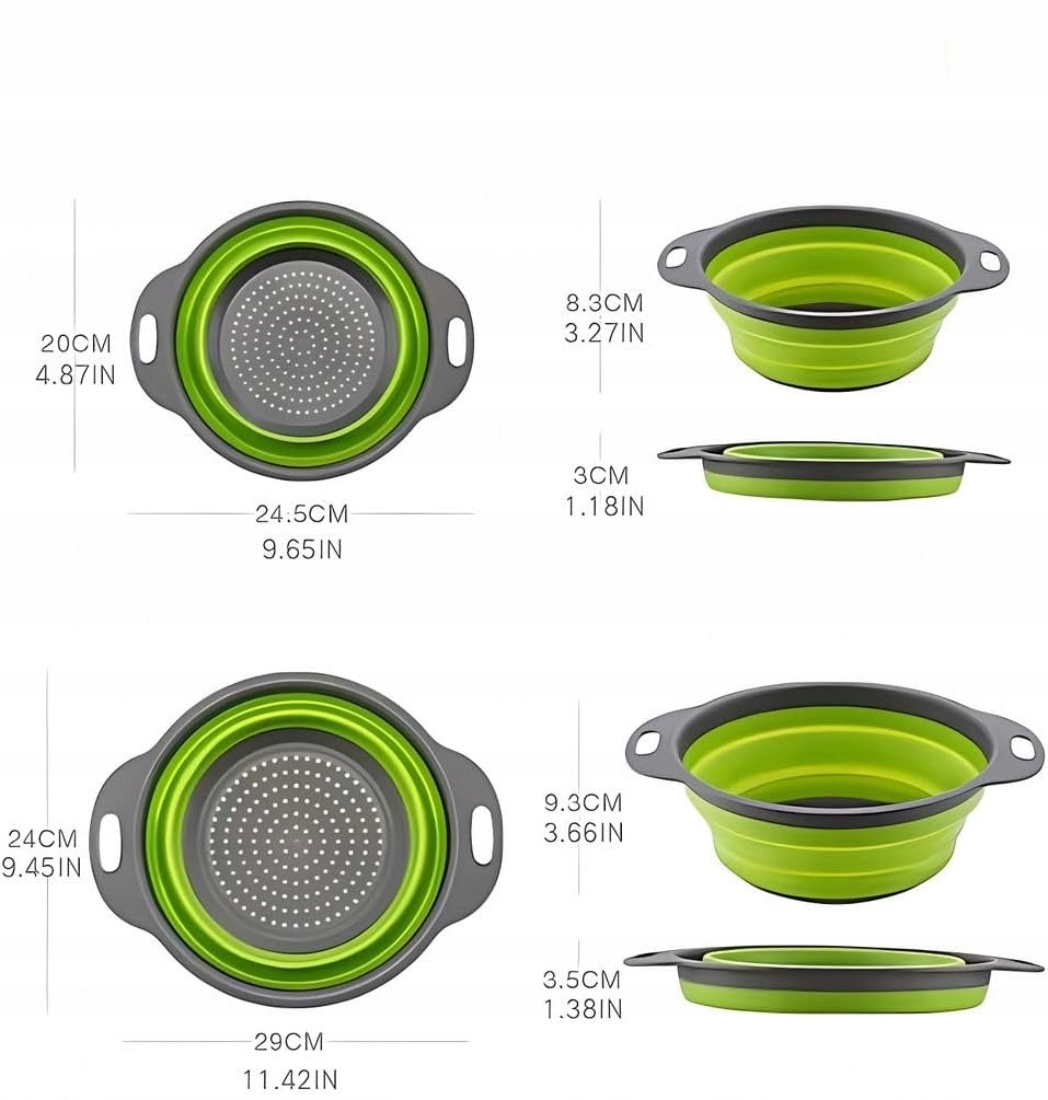 ✨ Відкрийте для себе кухонний аксесуар, який порадує вас своєю функціональністю, економією місця та універсальністю! Це силіконове складне сито двох розмірів (24,5 см і 29,2 см) зробить проціджування макаронних виробів і миття фруктів і овочів швидким, зручним і безпечним. Ідеально підходить для людей, які цінують практичні рішення в щоденній кулінарії.
