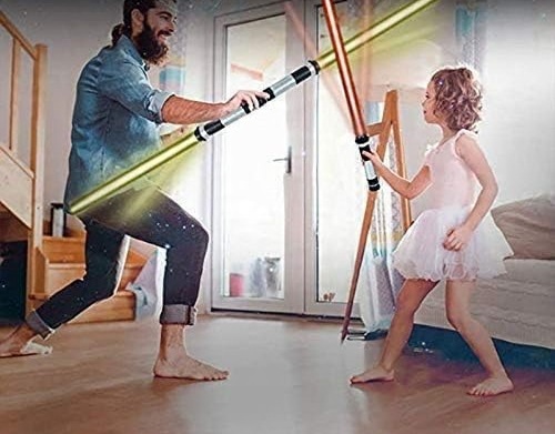 Увага! Мечі мають всю чорну ручку! Зв’яжіться один з одним, створюючи один довгий, двосторонній світлий меч - як у знакових науково -фантастичних фільмах!