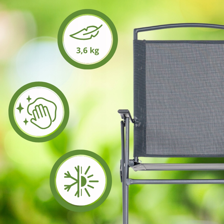 ❇️ Сидіння з дихаючої тканини Textilene адаптується до форми вашого тіла, забезпечуючи відчуття свіжості та комфорту, незалежно від того, відпочиваєте ви на терасі, в саду чи на балконі.