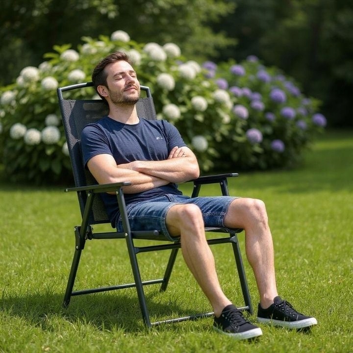❇️ Ніжки з протиковзкими накладками гарантують міцну опору на траві, терасі чи кемпінгу, усуваючи ризик неконтрольованого переміщення крісла.