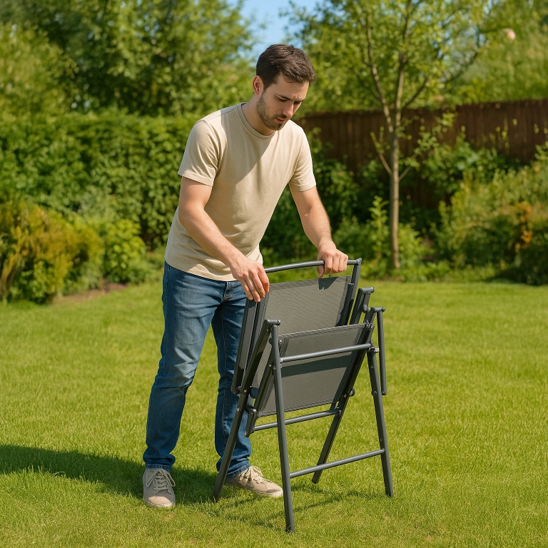 ❇️ Крісло Orlando складається за кілька секунд, перетворюючись на плоску панель, яку ви легко можете сховати в сараї, гаражі чи на балконі.