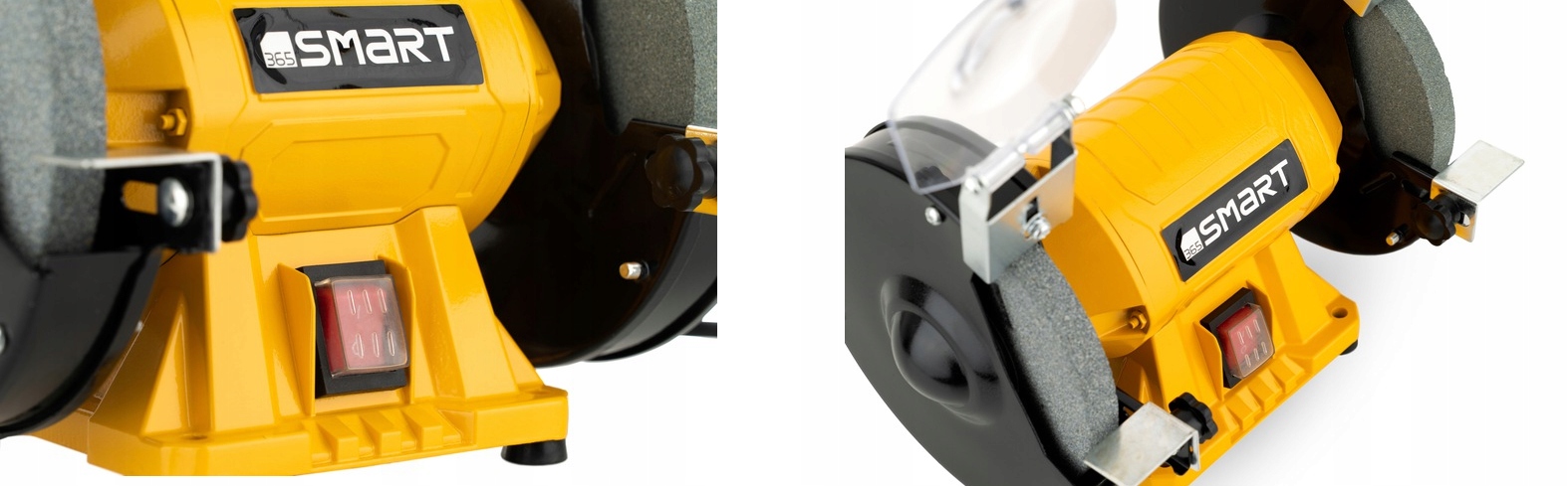 smart365 2-кам'яний шліфувальник-це незамінний інструмент, який слід знайти в кожному семінарі, сервісі, гаражі та домашньому будинку. Він також був обладнаний надійним індукційним двигуном 150 Вт. Технологія безщільного двигуна значно розширює життя, знижує рівень шуму, а також обмежує необхідність обслуговування. 4 Ми також обладнали перемикач додатковим захистом - гумова кришка забезпечує герметичність та захист від вологи та подання з заготовки.
