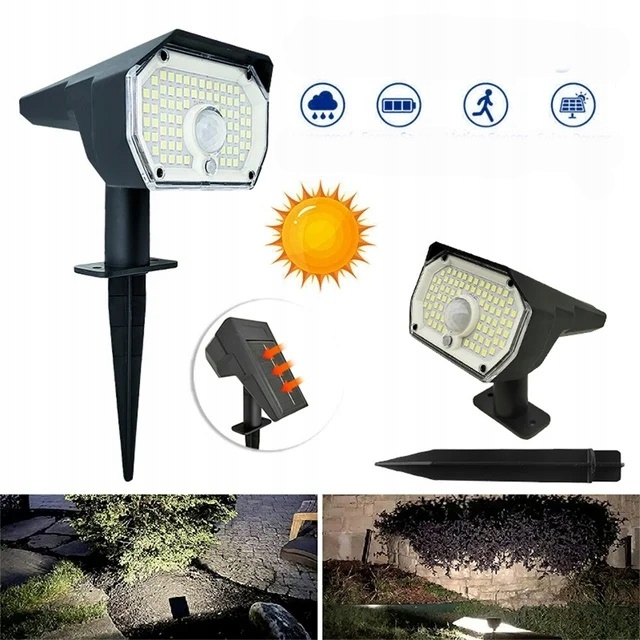 2X SOLARNA LAMPA Z CZUJNIKIEM RUCHU 76LED SUPER MOCNA 3TRYBY 2 INSTALACJA