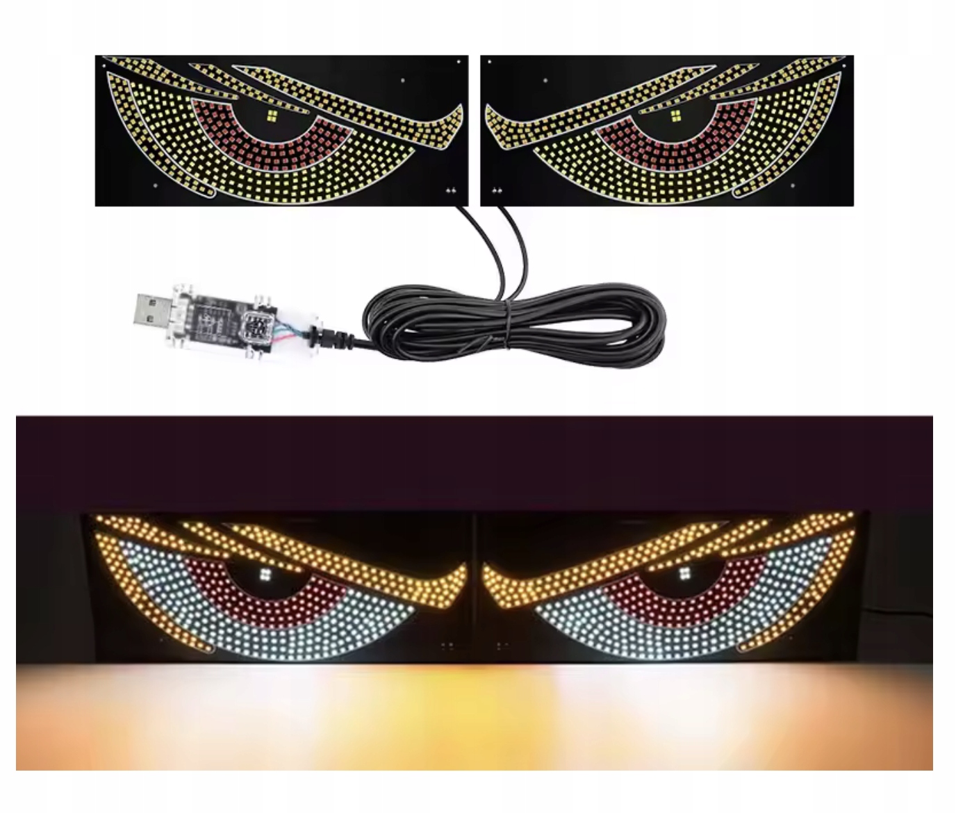 Динамічні світлодіодні фари «Очі диявола» змінюють зовнішній вигляд вашого автомобіля всього за кілька секунд. Ви встановлюєте їх на лобове скло вантажівки, заднє скло автомобіля або як декоративне освітлення у своєму гаражі чи кімнаті. Просто підключіться до USB - не потрібно змінювати інсталяцію.