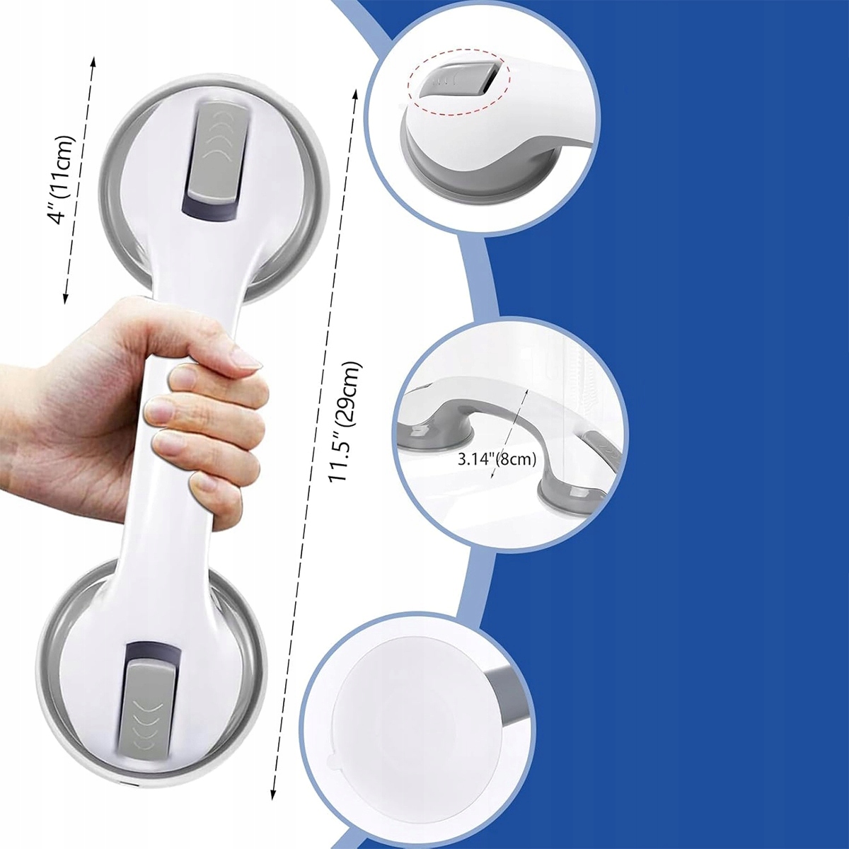 Ручка для ванної кімнати для людей похилого віку виготовлена з міцного пластику і легко ламається. Дві присоски з надпотужною адсорбційною здатністю є дуже стійкими, запобігають падінню та забезпечують безпечну підтримку для душових лавок і стільців. Вам не доведеться турбуватися про те, що ви послизнетеся у ванній.