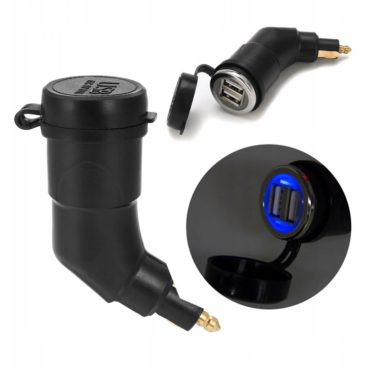 Трохи менший за стандартні автомобільні зарядні пристрої від прикурювача, цей мотоциклетний штекер підходить для мотоциклетних розеток DIN або BMW, має подвійний USB-порт для заряджання більшості мобільних пристроїв, таких як мобільний телефон, фотоапарат, GPS, PM3, PSP тощо. .