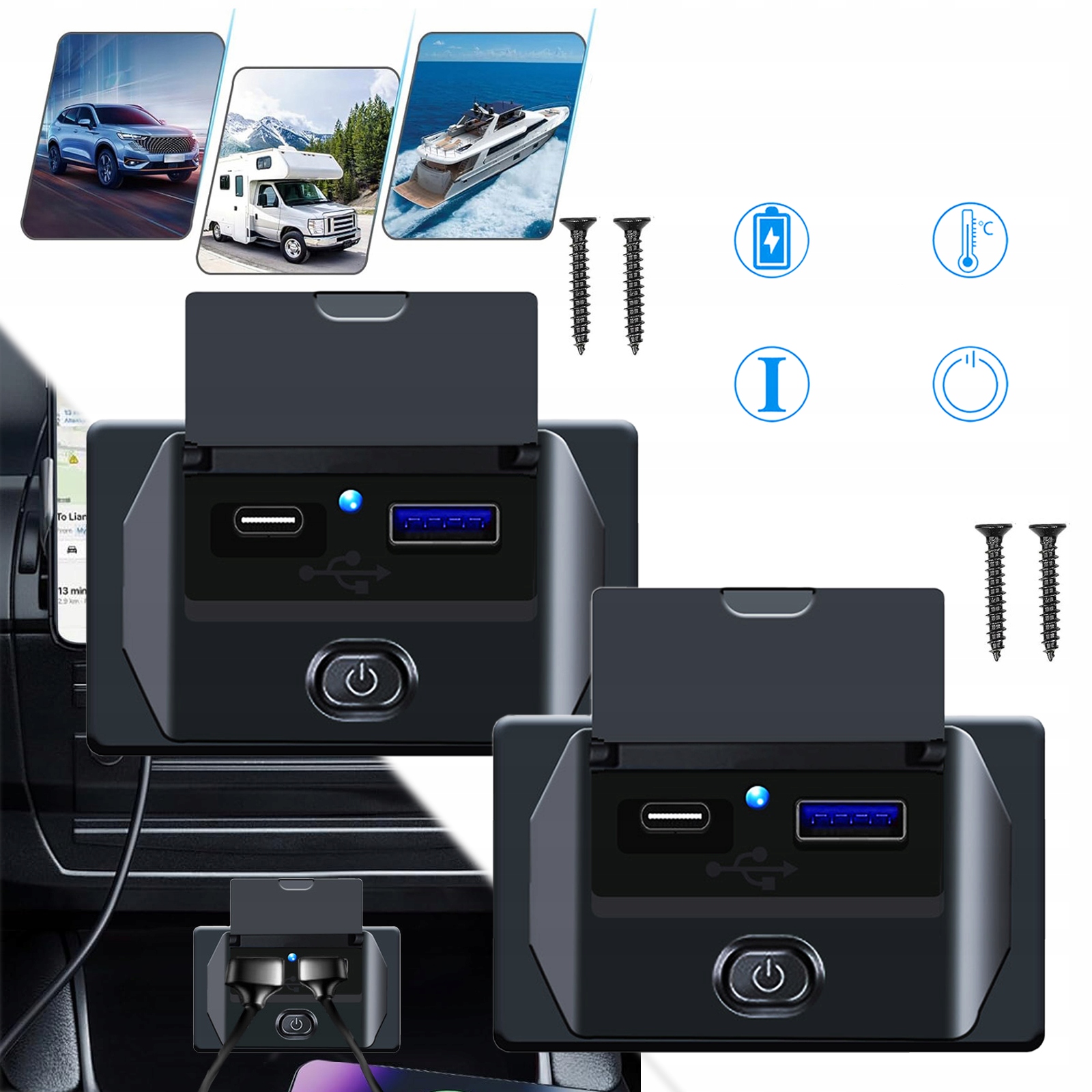 Зарядний пристрій із двома портами USB. Завантажуйте два сумісні пристрої одночасно. Примітка. Щоб досягти максимальної продуктивності, ваш телефон повинен мати надшвидку зарядку та використовувати оригінальний зарядний кабель. Подвійний порт USB, максимальна потужність 15 Вт (5 Вт + 10,5 Вт) Автомобільний зарядний пристрій USB обладнано перемикачем увімкнення/вимкнення для керування 2 підключеннями для заряджання, що економить енергію та захищає ваш пристрій протягом тривалого часу. Розкладна конструкція захисту від вітру, піску та дощу дозволяє уникнути тривожної пружини та забезпечує чудовий захист. Автомобільний зарядний пристрій виготовлено зі спеціального матеріалу ABS. Зазвичай він може працювати в умовах високої та низької температури (від -20° до 60°). Подвійний USB-роз’єм ідеально підходить для автомобілів, кемперів, квадроциклів, мотоциклів і човнів на 12–24 В.