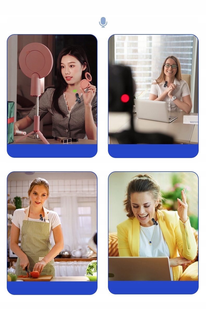 Мікрофони підключаються до бездротового приймача незалежно, без необхідності встановити додаткові програми. Попрощайтеся з вічно заплутаними кабелями.