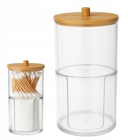 ✅ Набір контейнерів для косметичних паличок і ватних дисків - практичний набір, що складається з двох контейнерів для зберігання косметичних паличок і косметичних дисків. Ємності з прозорого акрилу. Кожен контейнер має діаметр 7 см і висоту 10 см.