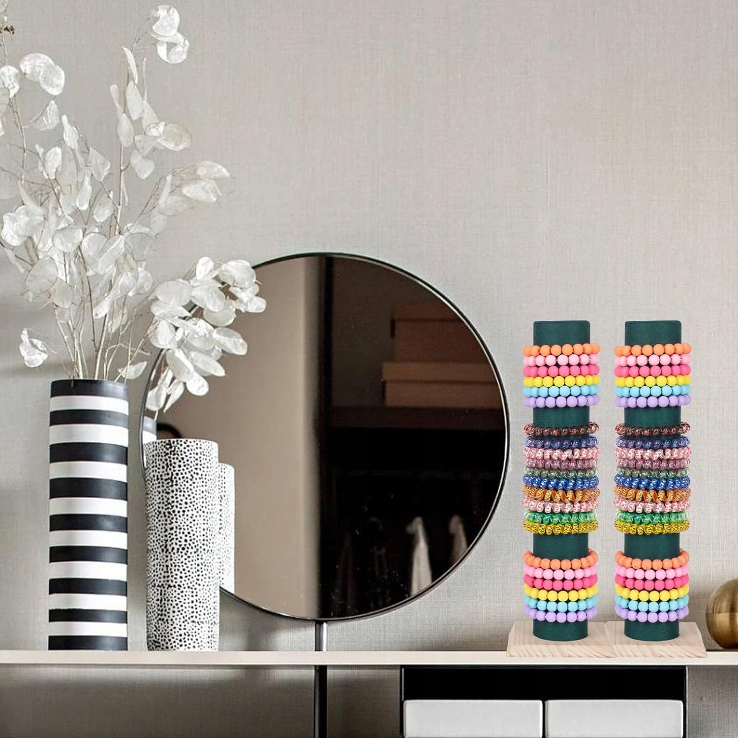 Вертикальна підставка для еластики для волосся / браслети - 2 шт. - Дисплей організатора - Вуд + Велюр - Смарагдовий колір