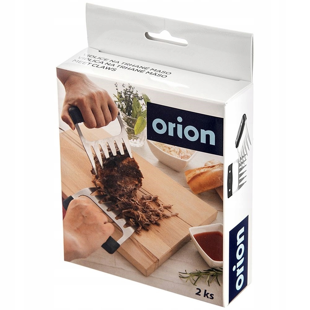 - ФУНКЦІОНАЛЬНІСТЬ - Вилки дозволяють легко і точно нарізати м'ясо на менші шматочки. Крім того, ми можемо використовувати їх, щоб утримувати гаряче м’ясо під час нарізання або переміщувати великі шматки м’яса, наприклад, під час копчення. можна мити в посудомийній машині. Витягнуте м'ясо можна подавати в сендвічах, багетах і гамбургерах. З їх допомогою ми можемо зручно приготувати популярну свинину. Користуватися виделками надзвичайно просто. Вони ідеально підходять для смаження, запікання та варіння. Виготовлені з міцних матеріалів, при правильному використанні вони прослужать багато років. Оригінальний продукт чеського бренду Orion. Виготовлено відповідно до європейських стандартів.