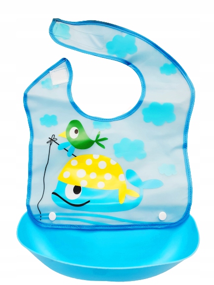 Нагрудник має жорстку кишеню для залишків їжі, що полегшує утримання в чистоті під час їжі.