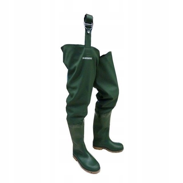 високий, виготовлений з водонепроникного, водонепроникного ПВХ -матеріалу від Shimano. Вони дозволяють вам вільно рухатися, не боячись змочити взуття.