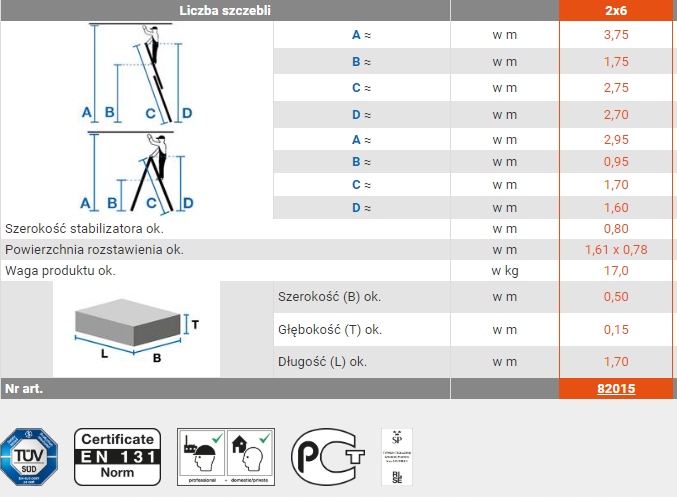 - Сходи сходи, що складаються з двох 6-кассильних адаптерів з широкими стабілізаторами на основі та робочою платформою з несувним покриттям, захищаючи від вологи, розміри платформи, розміри приблизно 1,47 x 0,50. Застосування місцями з різноманітною висотою поверхні, наприклад, на сходах, платформах сходів. Krause