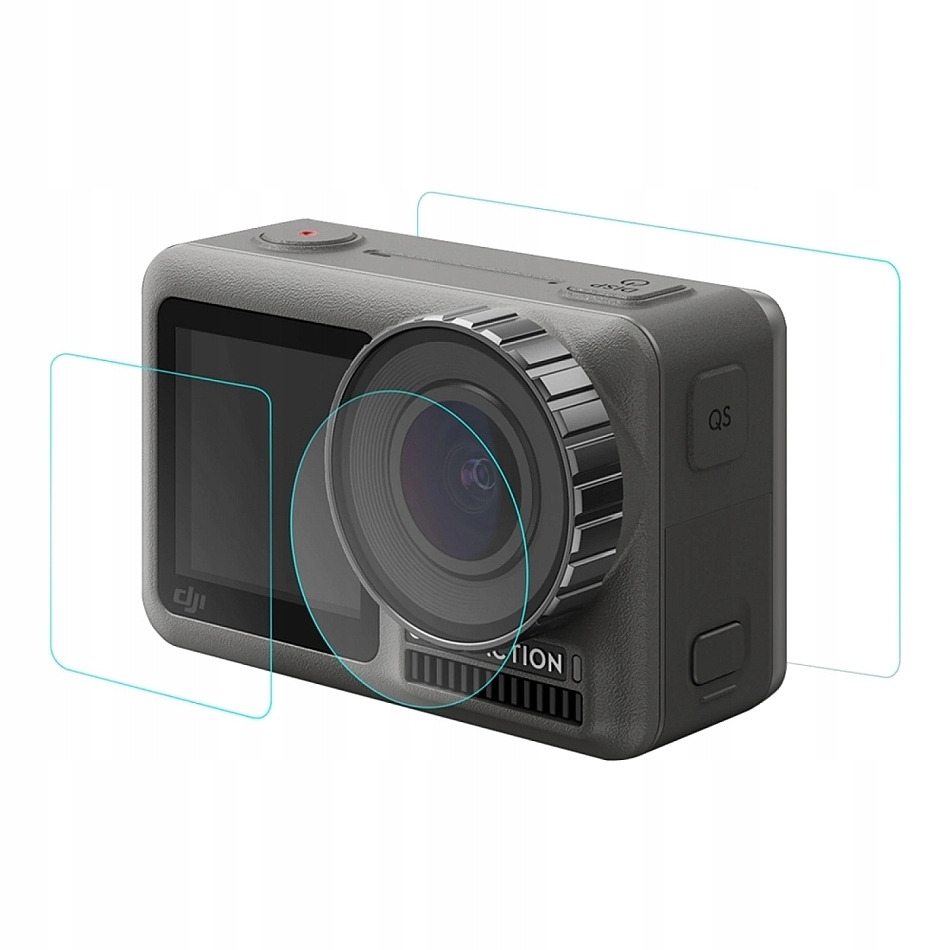 Загартоване скло для об’єктива та 2x РК-дисплея Екран для DJI Osmo Action Міцне, високоякісне загартоване скло для дисплеїв (передній і задній) і об'єктів камери забезпечує максимальний захист від бруду, механічних пошкоджень і подряпин.Покриття не погіршує якість і не стирчить з об'єктива або екрану. Він розроблений таким чином, щоб ідеально покривати всю охоронювану територію. Бленда встановлюється на об’єктив, просто знявши захисну плівку, помістивши її на об’єктив і обережно натиснувши.