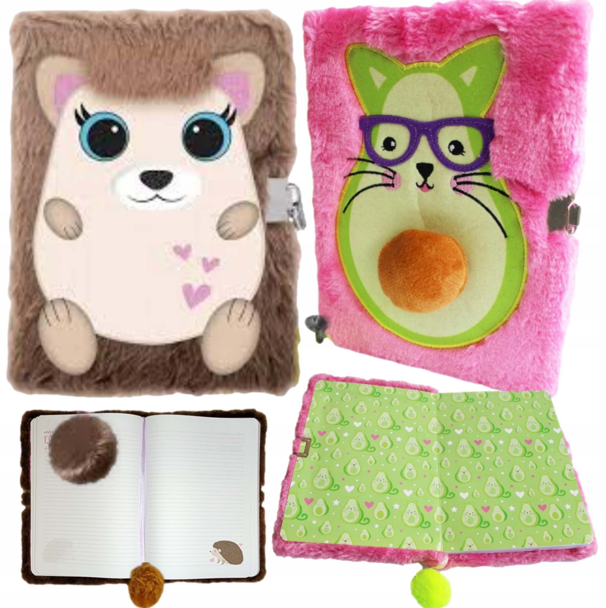 2xPAMIĘTNIK,PAMIĘTNIKI WŁOCHACZ notes z kłódką PLUSZOWY