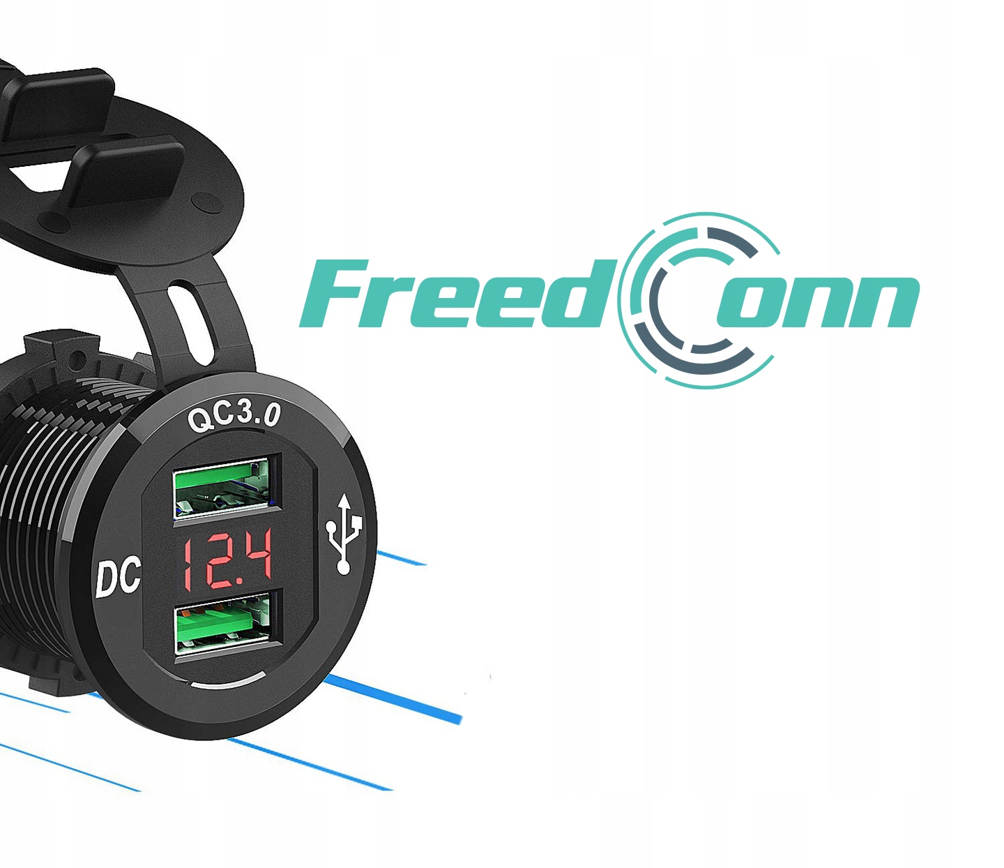 Водонепроникний швидкісний зарядний пристрій FreedConn для автомобіля, мотоцикла, скутера, квадроцикла, моторного човна 2x USB QC3.0!