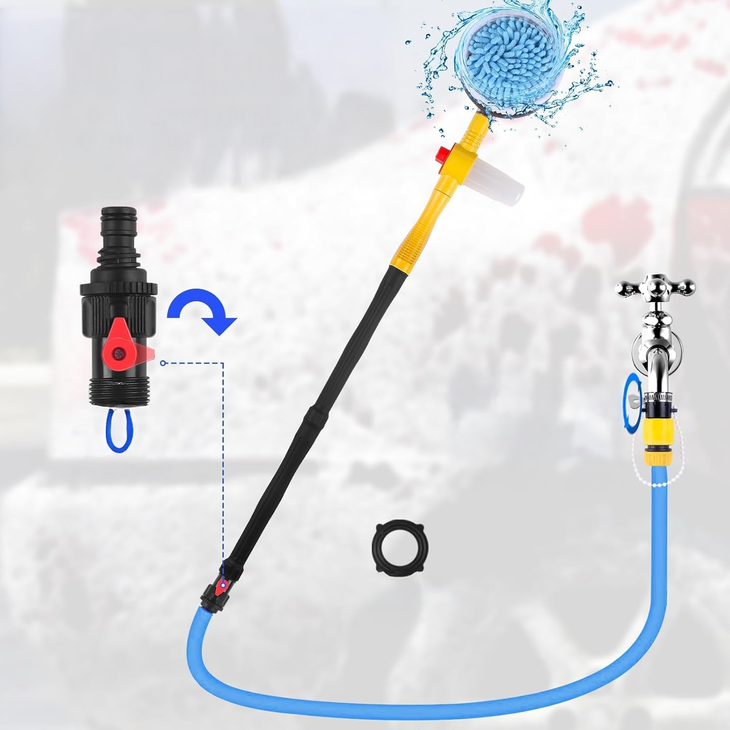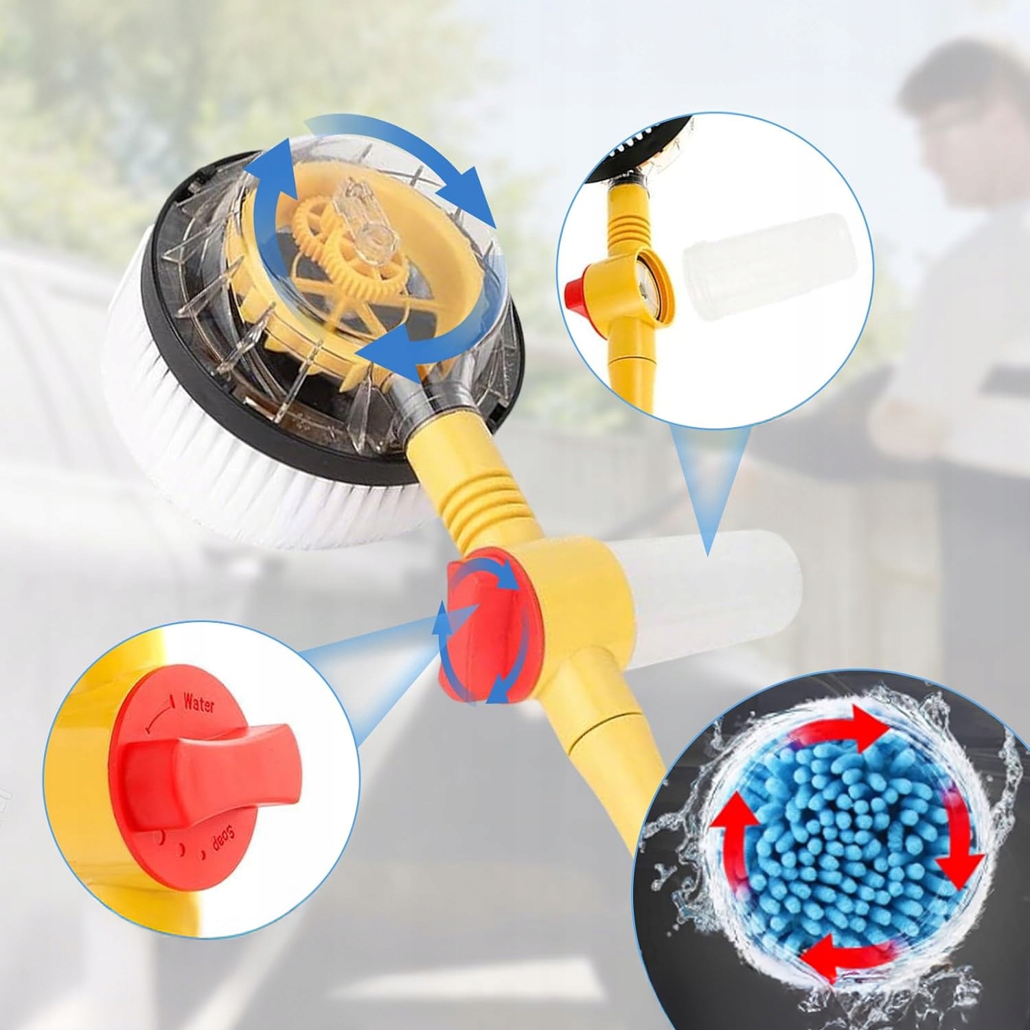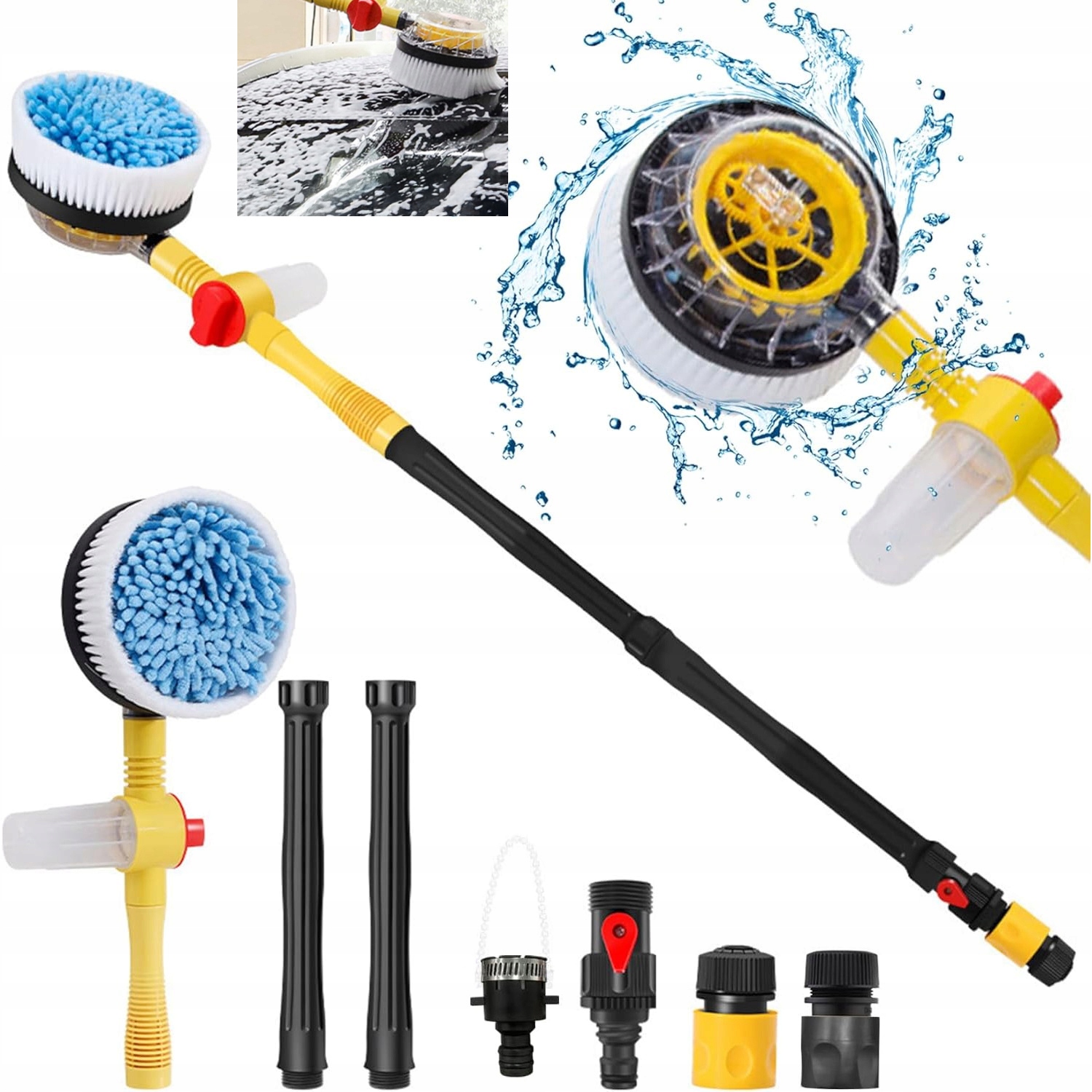 автомобіль для миття 1 м додому та машина💡💡360 ° обертова головка пензля: самовигука за допомогою тиску води (не потрібна електроенергія)