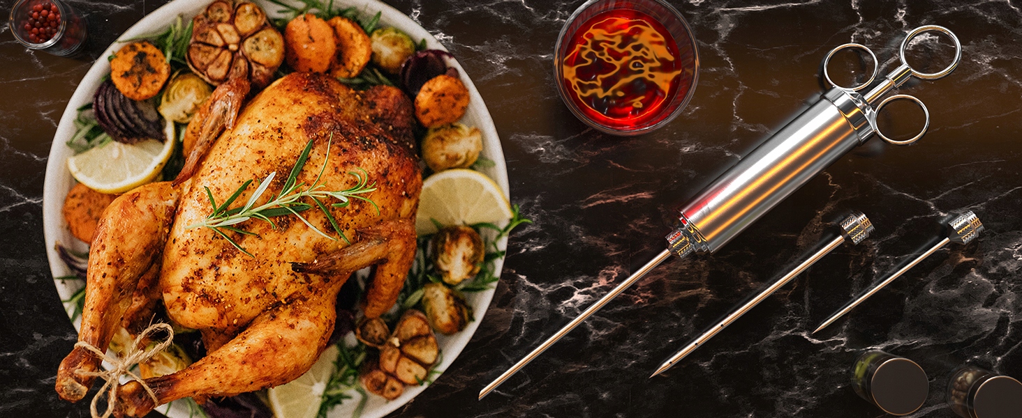 Шприц спецій з 304 нержавіючої сталі - це зручний кухонний інструмент, який дозволяє легко вводити рідкі соуси або ароматизовані олії безпосередньо до м'яса, щоб додати дивовижний смак і зробити кожен укус буде гострою та соковитою. Підходить для випічки індички, яловичини, свинини, риби та інших інгредієнтів.