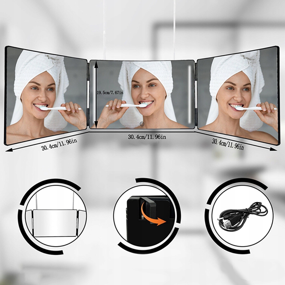 3 -KIERUNKOWE LUSTERKO KOSMETYCZNE PODŚWIETLANE ROZKŁADANE WISZĄCE SKŁADANE