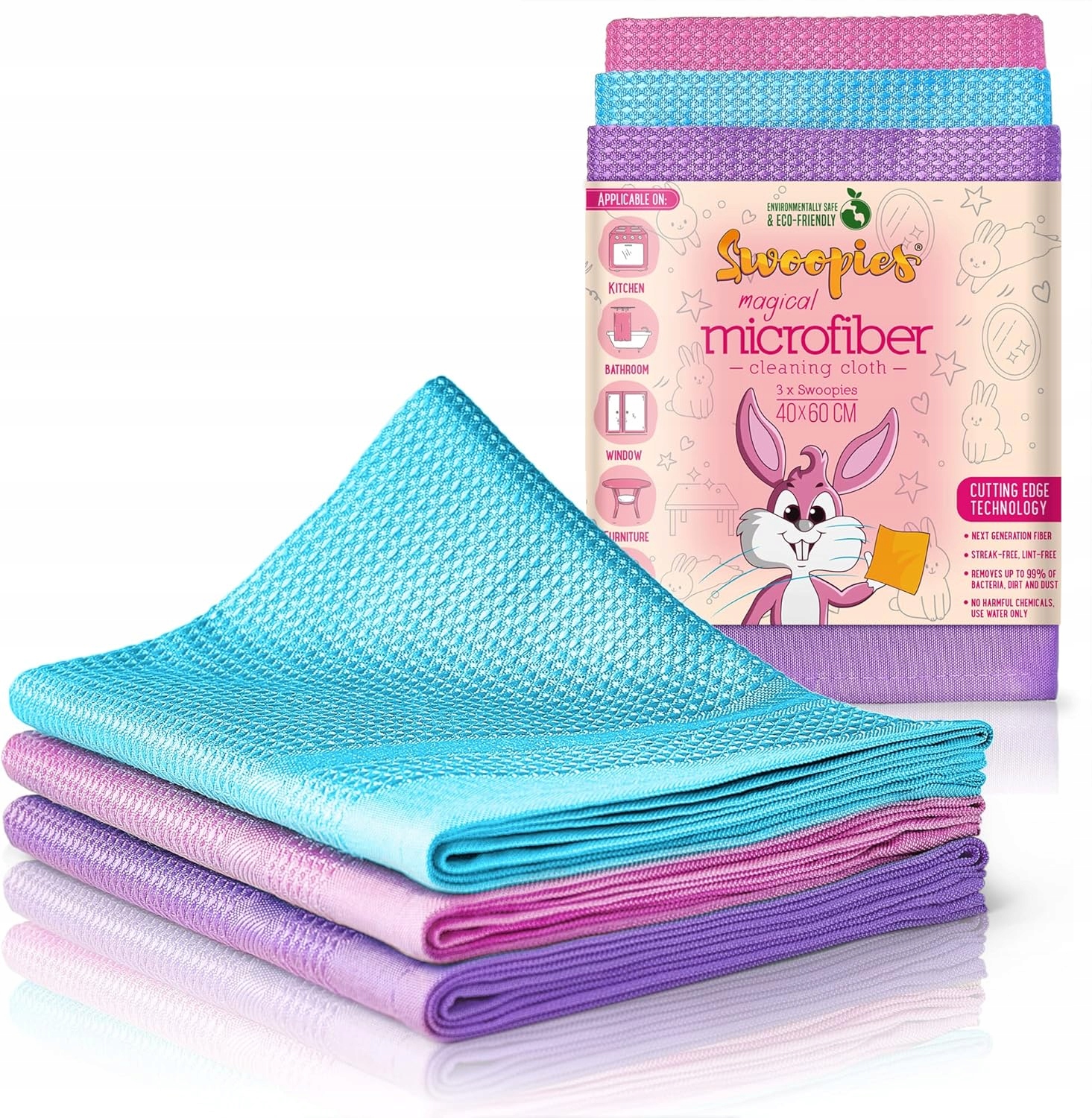 - Легке очищення - просто змочіть тканину чистою водою, ретельно відкрутіть і надайте поверхні високий блиск - ідеально підходить для кухні, суден, ванних кімнат, вікон, меблів та автомобіля, а також дзеркала, скла, плитки, фурнітури, екранів тощо. Поверхні не потрібно витерти - кристально чистий ефект.