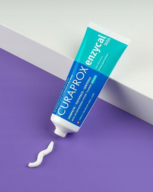 curaprox enzycal зміцнює природну захисну систему зубів, що міститься в слині. Ферменти та активний фтор допомагають захистити зуби від карієсу. На відміну від більшості, зубна паста Enzycal не містить SLS.