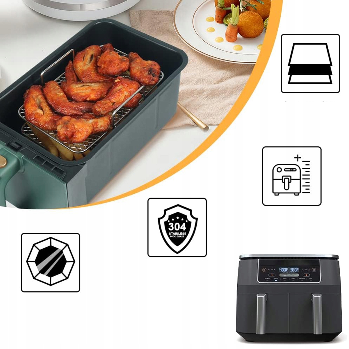 【Ідеальні аксесуари для повітря -фриль】 можна використовувати в повітряному фриджі, піч -фрилі для випічки або приготування різних страв, таких як стейки, курка, риба, бекон, овочі, картопля фрі та багато інших. Ви також можете використовувати як підставку для сушіння. Легко злити те, що ви хочете, м'ясо, фрукти та овочі. Переконайтесь, що собі та свою сім'ю здоровою, поживною та смачною їжею.