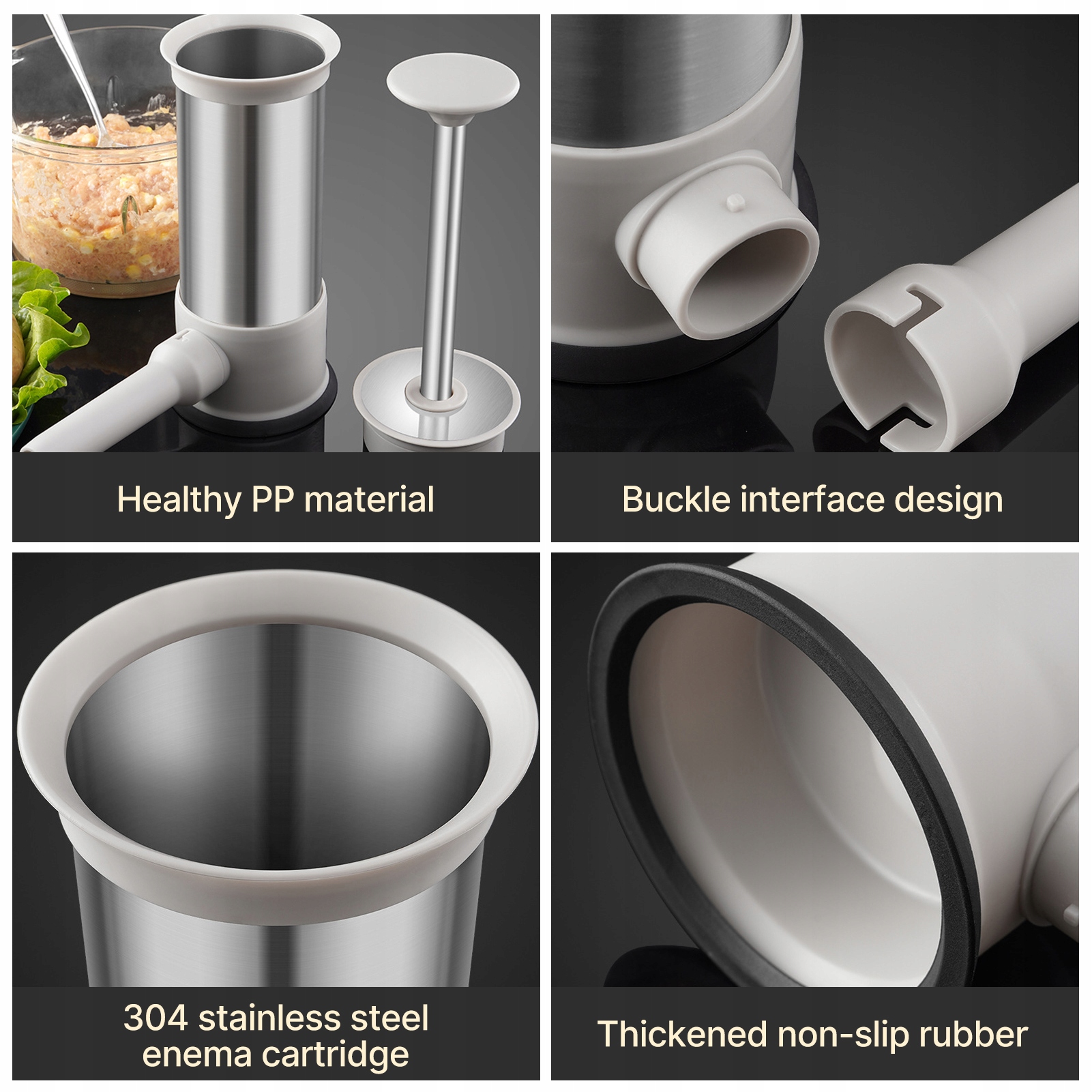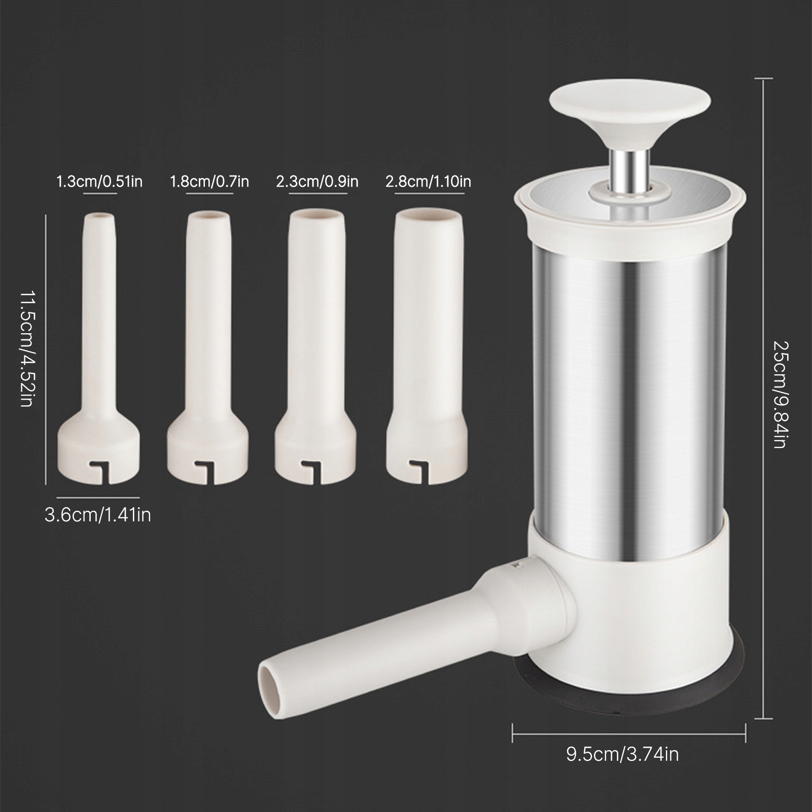 2. 【4 розміри зйомок форсунки】 SielaSek оснащений 4 безкоштовними бонусними пластиковими трубами. А діаметр становить 13 мм/0,51 дюйма, 18 мм/0,71 дюйма, 23 мм/0,91 дюйма та 28 мм/1,1 дюйма, що дозволить вам легко зробити свіжий і різний розмір ковбас у домашніх умовах. Трубки можна складати для легкого зберігання.