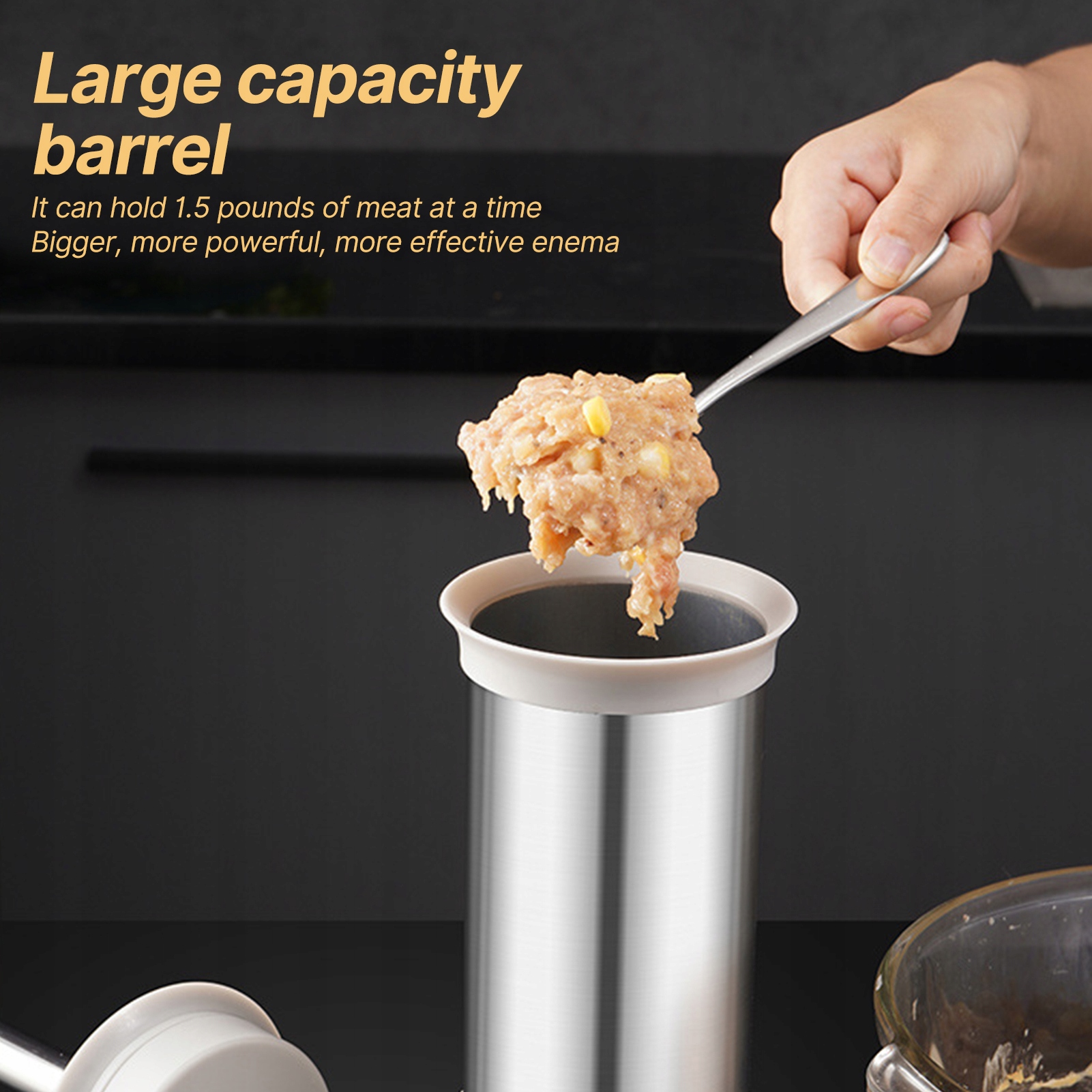 3. 【Велика ємність】1,5 л/3,3 фунта ковбасниця, яка може приготувати набагато більше ковбас за один раз. І він підходить не лише для ковбаси, а й для приготування хот-догів, братвурстів, м’ясного пресу тощо.