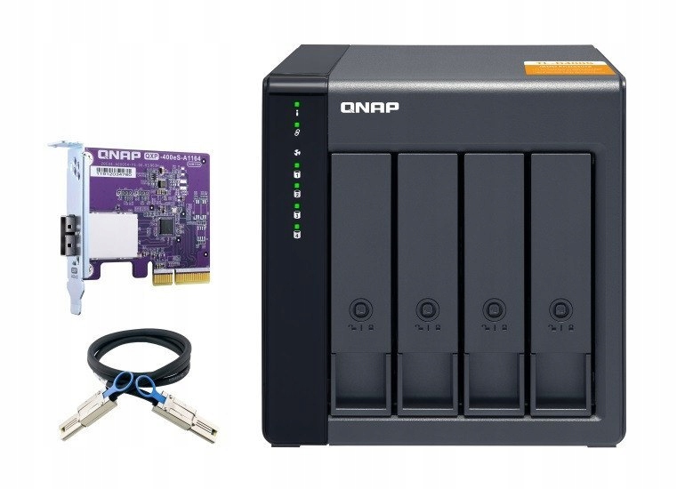 Блок розширення Qnap TL-D400S, Tower, 4x 2,5/3,5" SATA, з хост-картою PCIe SATA QXP-400eS-A1164 і 1 зовнішнім кабелем SAS / SATA SFF-8088 до SFF-8088