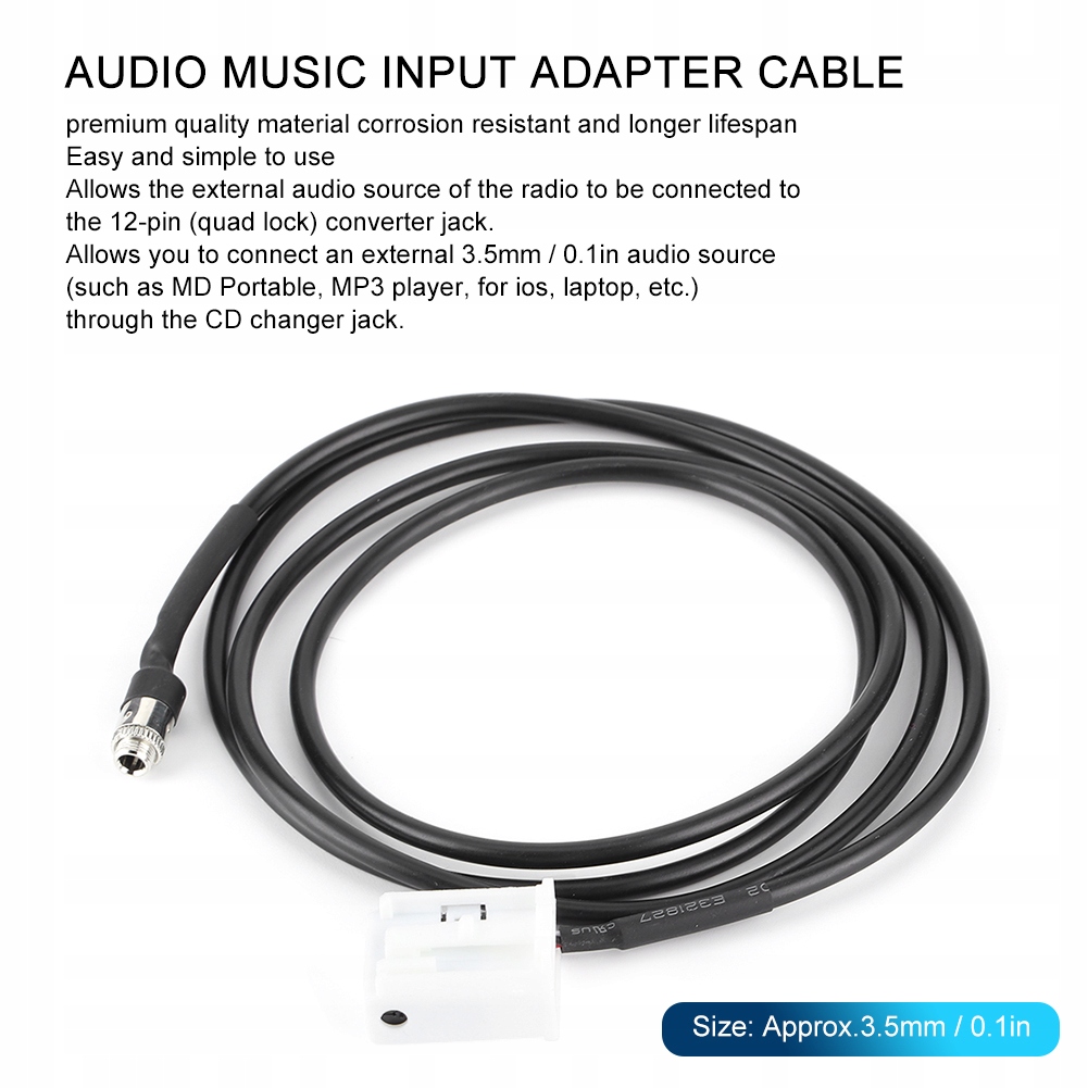 2. Це дозволяє керувати зовнішнім звуком звуку 3,5 мм / 0,1 дюйма (наприклад, портативний MD, MP3 -програвач, для iOS, ноутбука тощо) через компакт -диск. Цей адаптерний кабель, виготовлений з високоякісних матеріалів, міцний, стійкий до корозії та великий життєвий період.