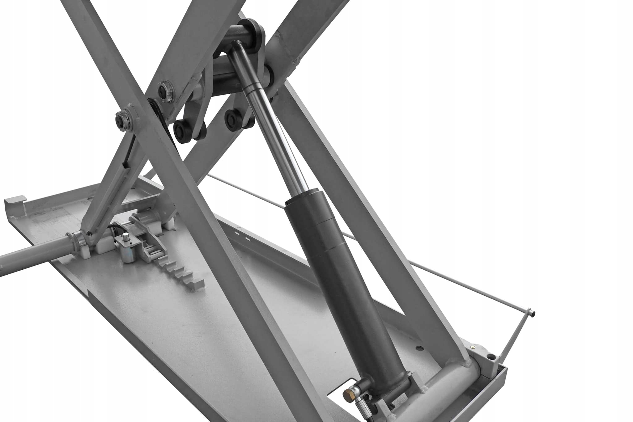 Підйомник оснащений механічною фіксацією висоти з електричним розблокуванням, що підвищує безпеку під час експлуатації. Платформи з регульованою довжиною, механічно синхронізовані, дозволяють легко адаптуватися до різних типів і відстаней між автомобілями.