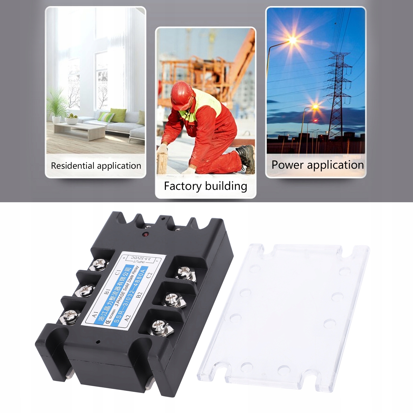 4. Трифазні напівпровідникові електричні пристрої мають пластиковий корпус зі зниженою горючістю, затопленою епоксидною смолою, з різьбовими затискаючими кабелями, сильною конструкцією, високою стійкістю до ударного приводу та стійкістю до вібрації