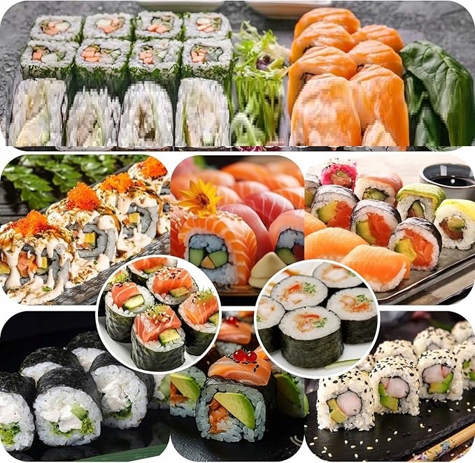- Універсальний розмір: Кожен килимок має оптимальні розміри, які дозволяють створювати як маленькі, так і більші роли для суші, що дає вам свободу експериментувати з різними рецептами та інгредієнтами.