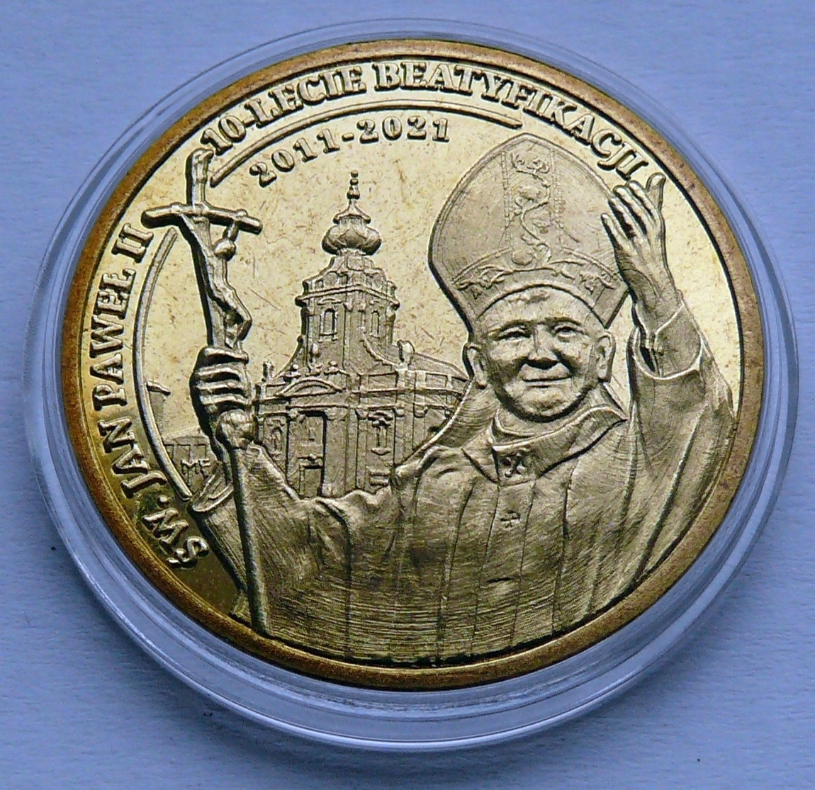 3 Денарі 2021 Святий. Іван Павло II з 10 -ї річниці Беціативності - у шапці (4)