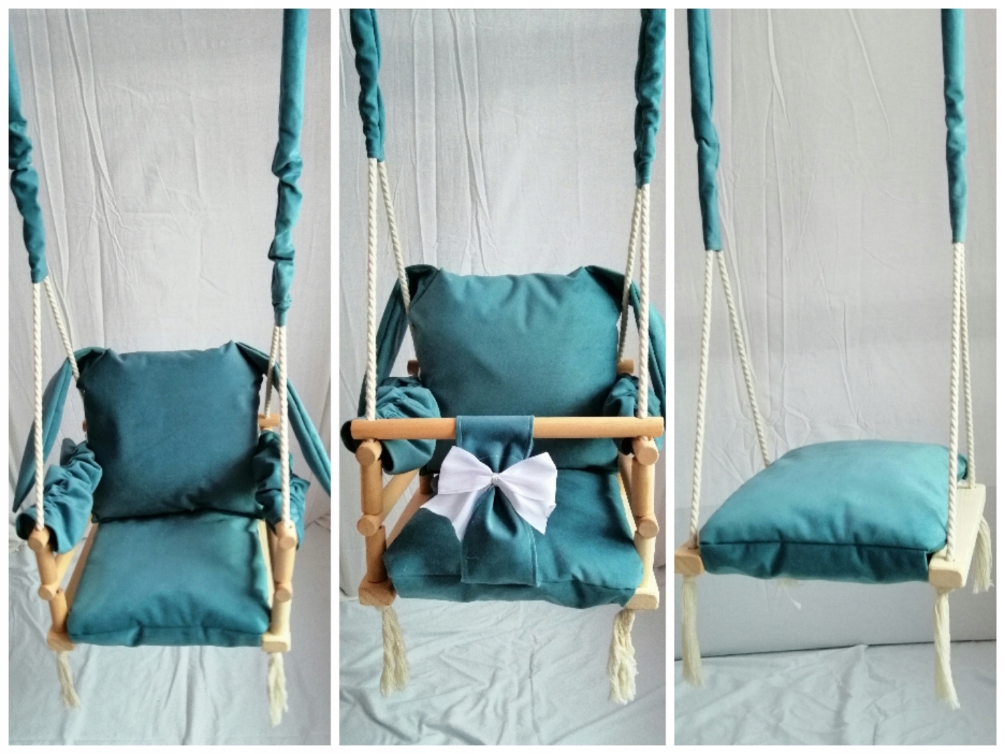 Ми пропонуємо вам нову гойдалку 3in1, яка може служити вашій дитині довше завдяки можливості розгорнути приклад на фотографії. Виготовлений з дерева та м'якого плюшевого матеріалу. Ми самі робимо гойдалки. Польський продукт.
