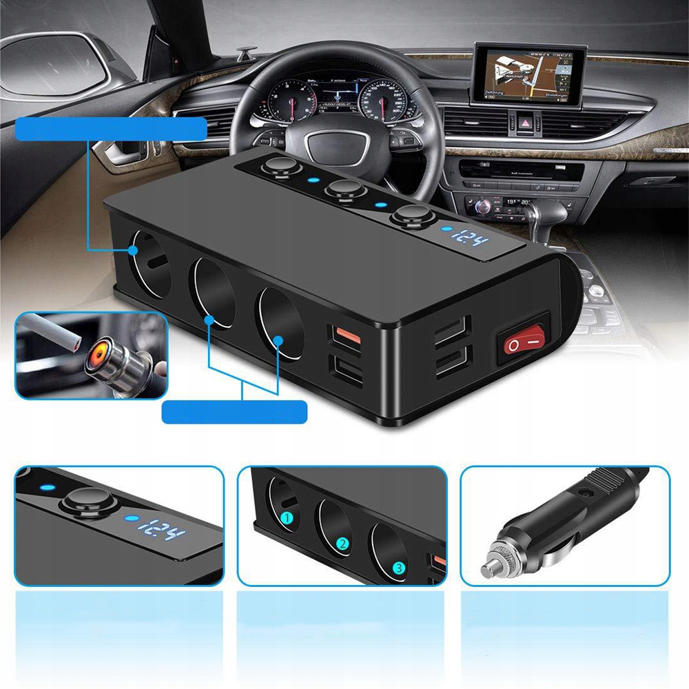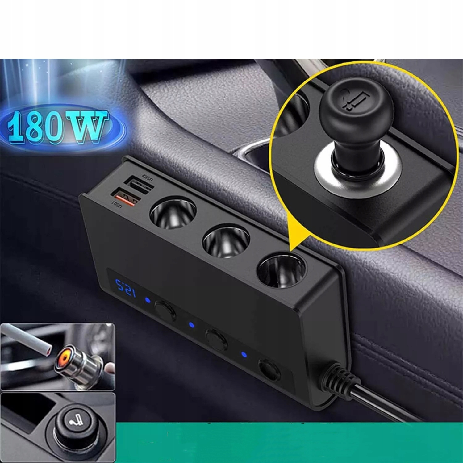 3 ГНІЗДА ДЛЯ ПРИКУЛЬНИЧКИ + 4 ПОРТИ USB АВТОМОБІЛЬНИЙ ЗАРЯДНИЙ ПРИСТРІЙ 180 Вт