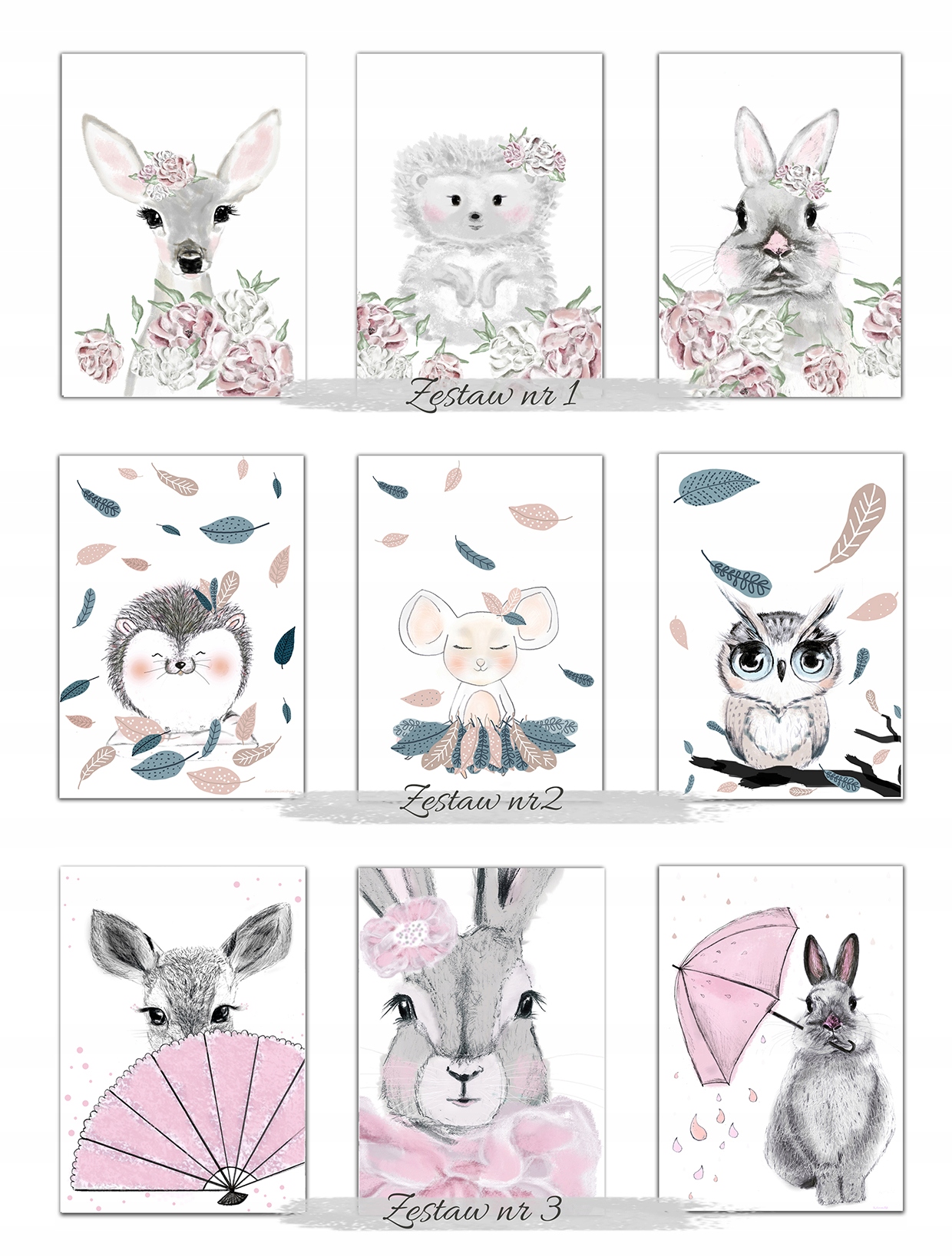 3 х постери для дівчинки олень кролик сова а4