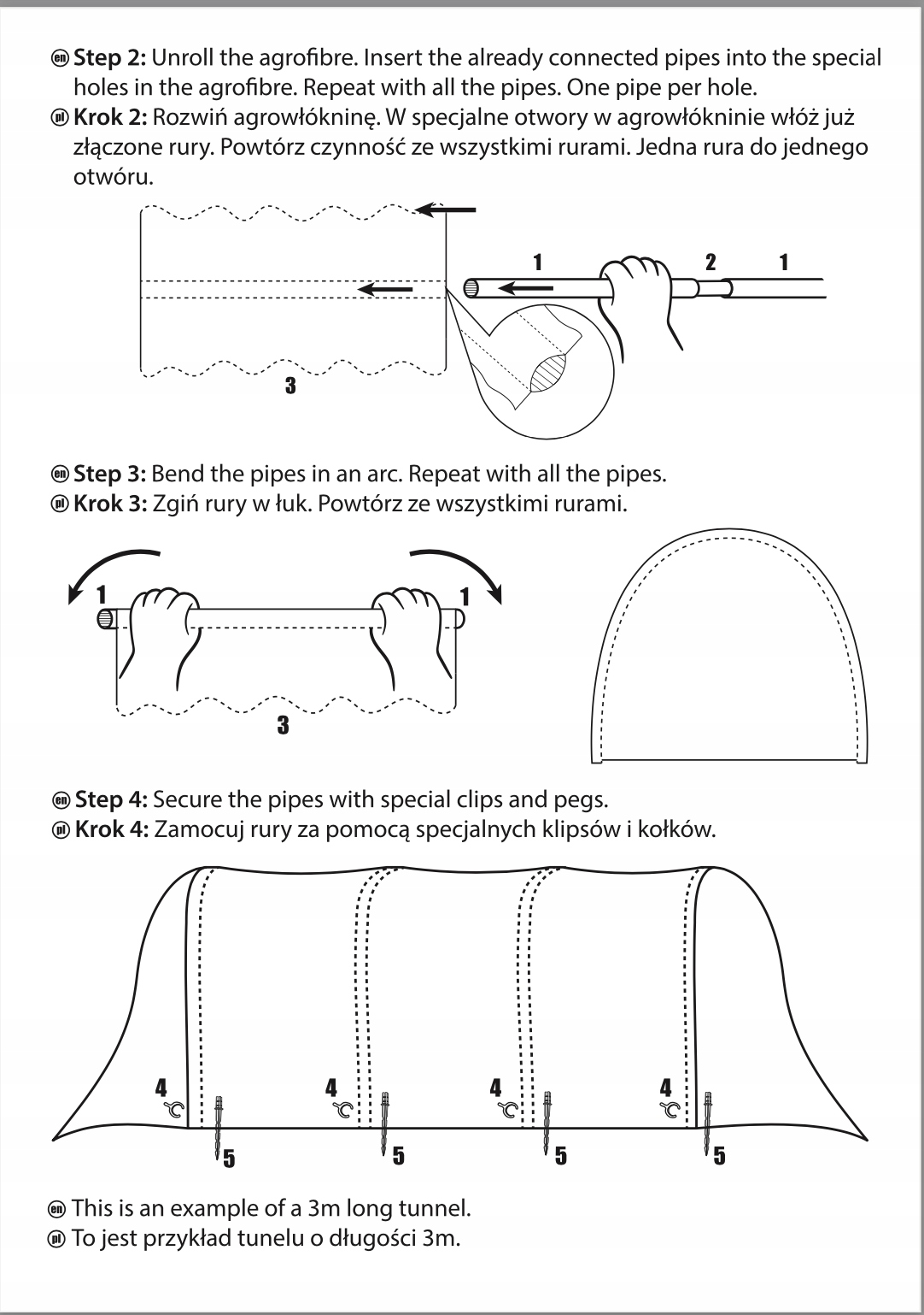 - Елементи комплекту: дуги / кліпси / кілочки / агротекстиль