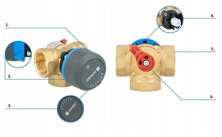 відрізняється сучасним дизайном і привабливим зовнішнім виглядом. Позначення на синьому кільці приводу вказують на положення дзеркала змішувального клапана. Ручне обертання клапана можливо завдяки використанню спеціальної муфти. Зрозуміла схема електричного підключення розташована збоку приводу. Не вимагає обслуговування. У комплект входить електричний кабель довжиною 2 м.