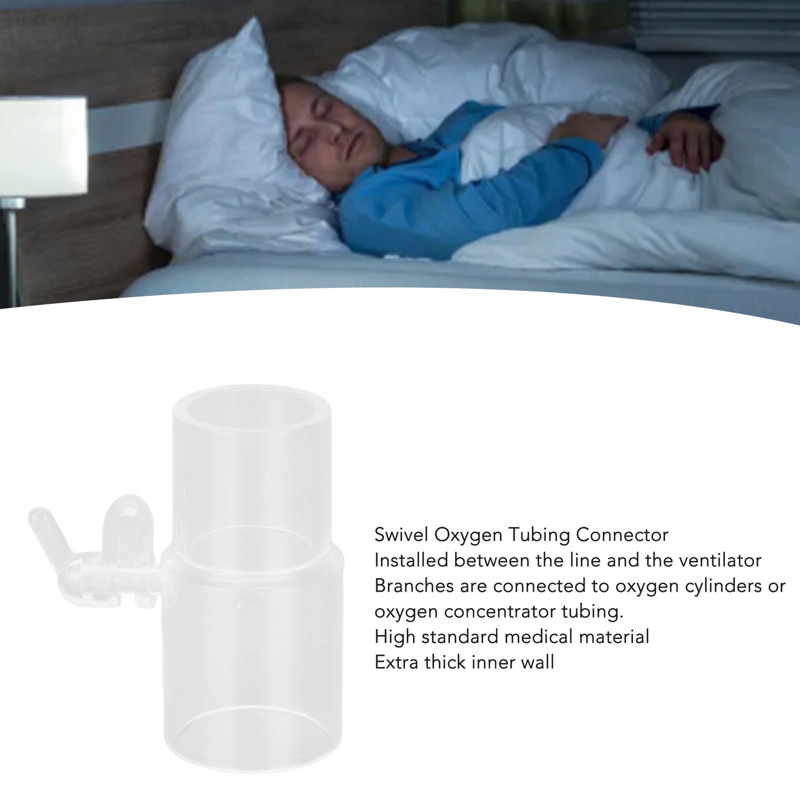 Особливість: 1. Універсальне джерело кисню: Три -шлях -з'єднувач з клапані призначений для встановлення між джерелом кисню та респіраторною камерою. Кінець гілки з'єднується з резервуаром для кисню або трубкою генератора кисню.