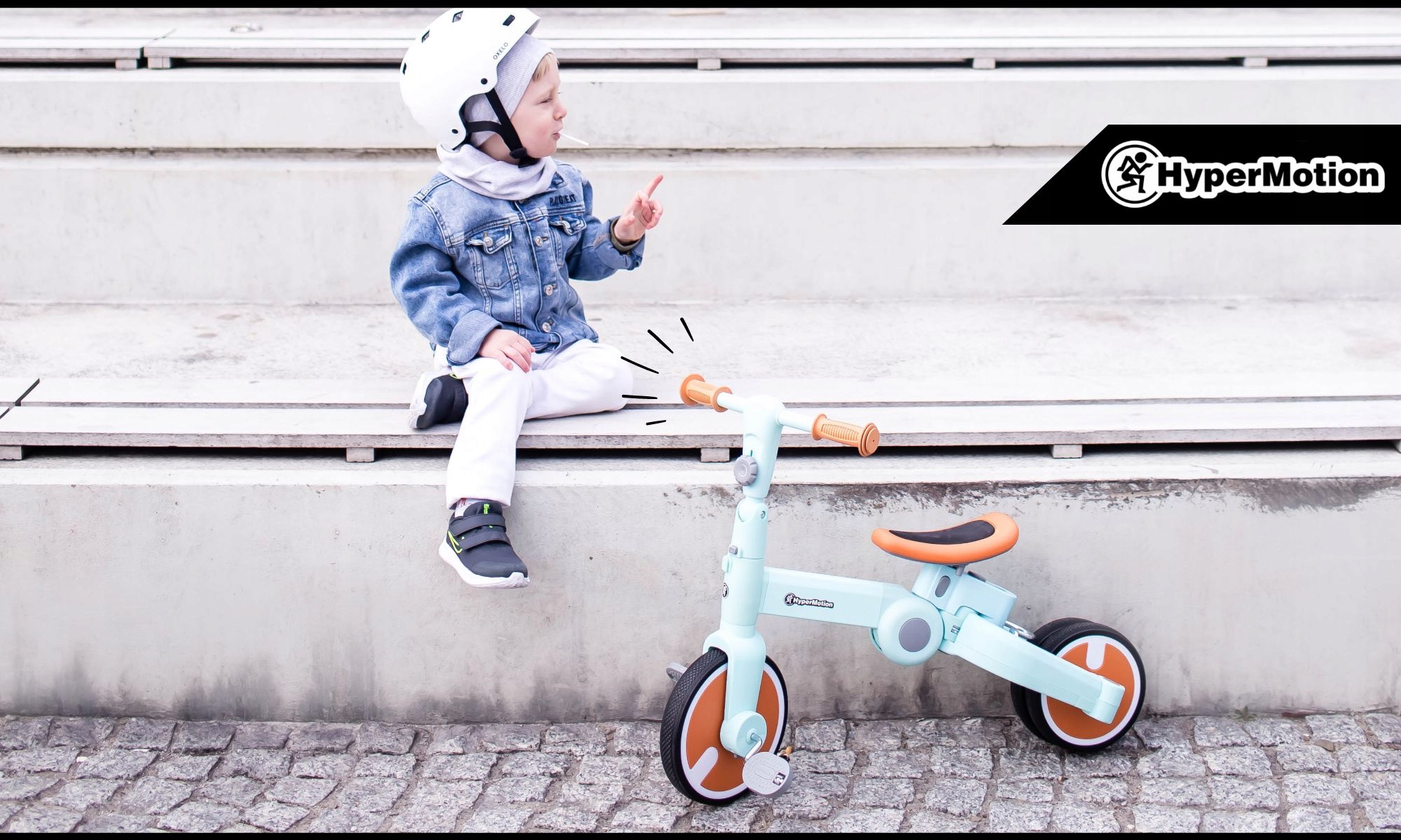 Спочатку велосипед слугує першим безпечним місцем для катання дитини. Він може перетворитися на триколісний велосипед, керований батьками, або самостійний велосипед, а зрештою стати балансиром або двоколісним велосипедом. Це ідеальний товариш для ігор на довгі роки!