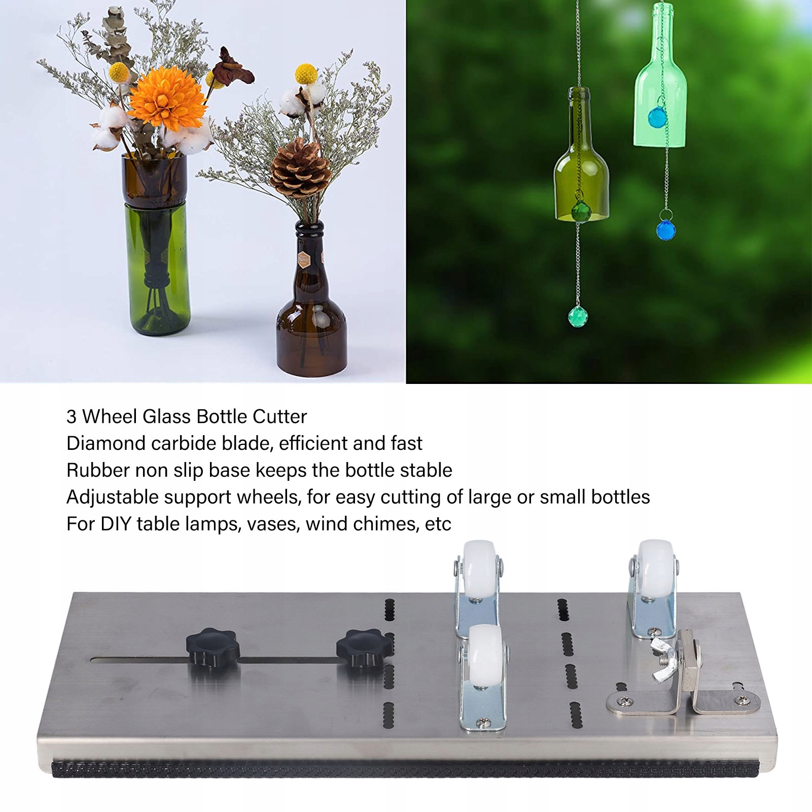 4. Широке застосування: Цей ніж для скляних пляшок можна використовувати для виготовлення різних ремесел та для виробництва вживаних скляних пляшок для настільної лампи, свічника, вази, курячого дзвінка тощо